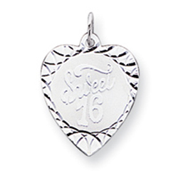 Sterling Silver Sweet Sixteen Heart Disc Charm
