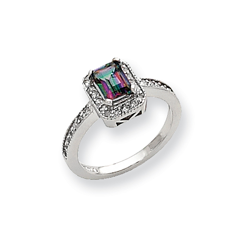 10k White Gold Diamond and Mystic Fire Topaz Ring