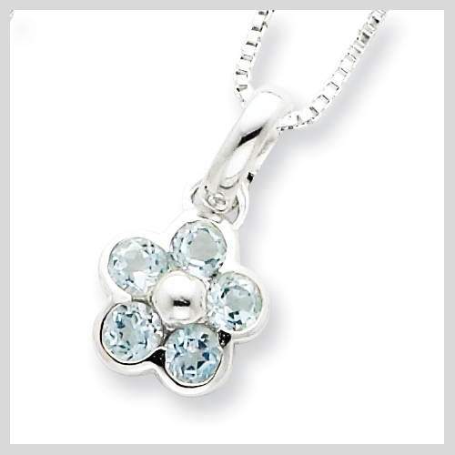 Sterling Silver Blue Topaz Flower Pendant w/ 16 Chain