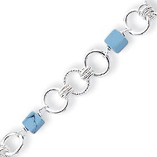 Sterling Silver Polished Turquoise Beaded Bracelet