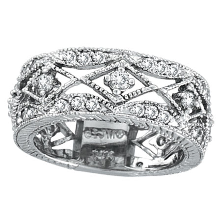 14K White Gold 1.0ct Diamond Antiqued Eternity Ring Band