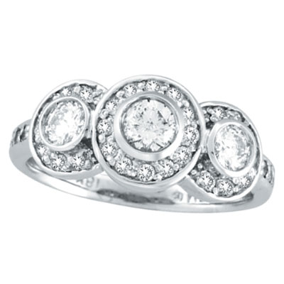 18K White Gold 1.25ct Diamond Bezel 3 Large Stone Ring