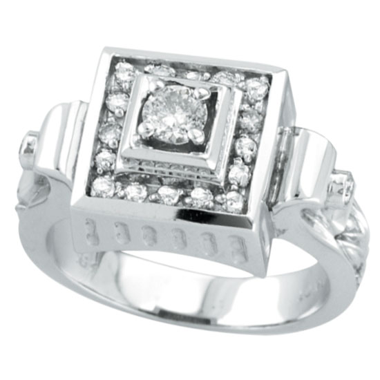 18K White Gold Antique Style Square Multiple-Tiered .50ct Diamond Ring