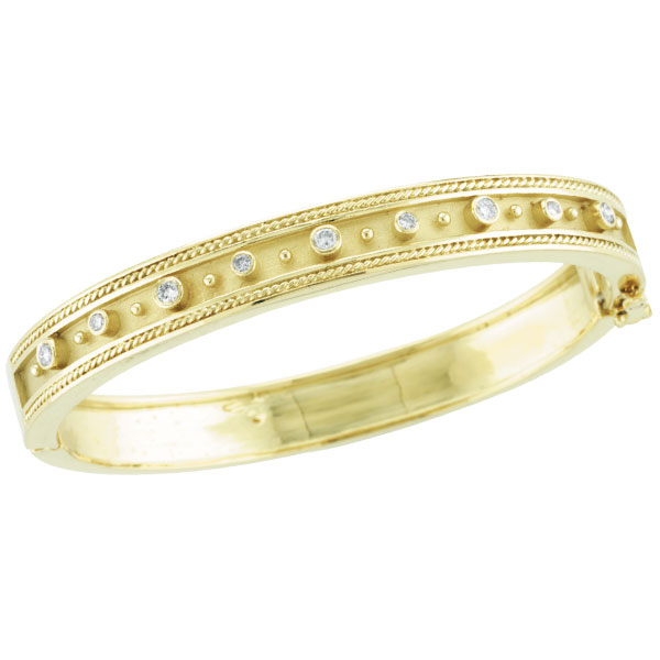 From our Byzantine Collection. Antique Style Diamond Bangle Bracelet in 18K Yellow Gold.
