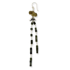 Picture of Sterling Silver Dark Green Jade And Olivine Crystal Earrings
