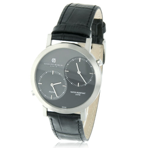 Men's Charles Hubert Black-Gray Dial Leather Band Watch