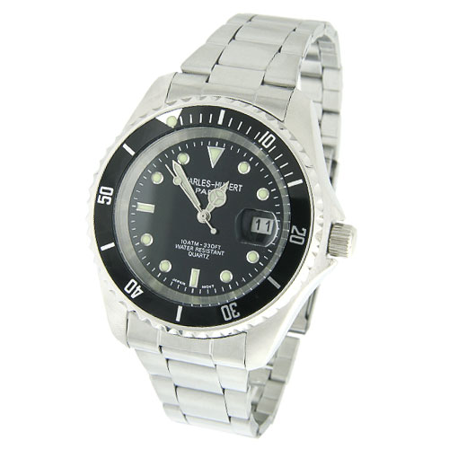 Men's Charles Hubert Silver-Tone Classic Black Dial Watch
