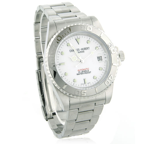 Men's Charles Hubert Stainless Steel Off-White Dial Watch