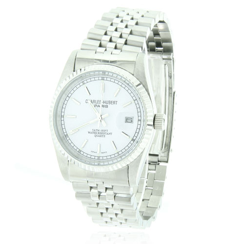 Men's Charles Hubert Stainless Steel Round Off-White Dial Watch