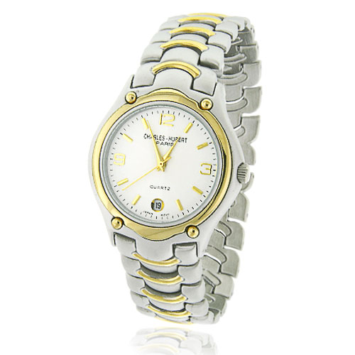 Men's Charles Hubert Two-Tone Brass Classic White Dial Watch