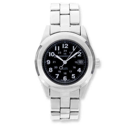 Men's Mountroyal Round Black Dial Stainless Steel Classic Water Resistant Watch