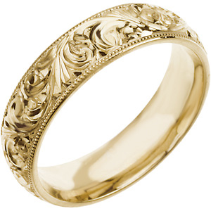 14K Yellow Gold Hand Engraved Band