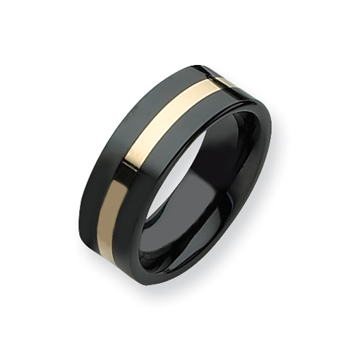 Ceramic Black With 14K Gold Inlay 8mm Polished Band