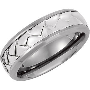 Size: SIZE 13.00 7MM POLISHED WEAVE BAND WITH STERLING SILVER INLAY