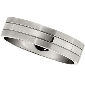 14k White Gold 5mm Grooved Brushed And Polished Wedding Band
