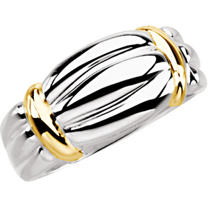 Sterling Silver & 14k Yellow Gold Ring Two Tone Band