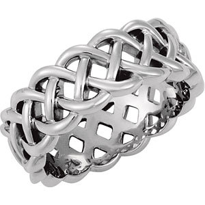 14kt White Band 10.00 08.00 MM Complete No Setting Polished FANCY WEDDING BAND