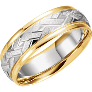 14kt Yellow/White Band 11.00 07.00 MM Complete No Setting Polished TWO TONE DESIGN BAND (Y-W-Y)