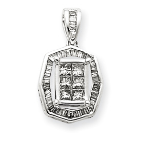 14K  White Gold  Diamond And Sapphire Circle Pendant