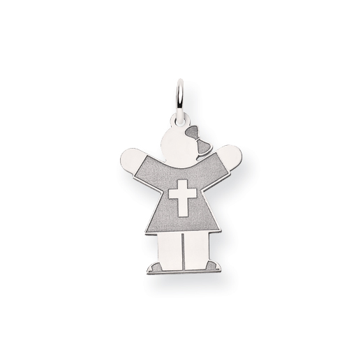 14K White Gold Round Blue Sapphire & Diamond Cross Pendant