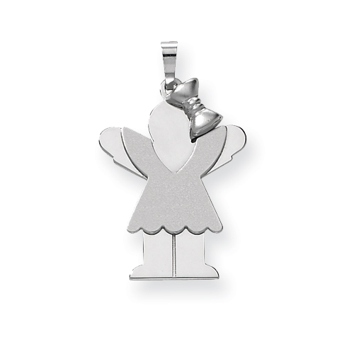 14k White Gold Medium Girl with Bow on Right Engraveable Charm