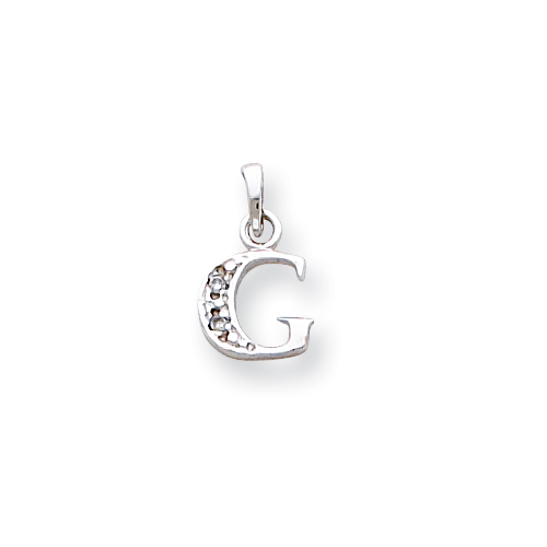 Picture of 14K White Gold Polished .01ct Diamond Initial G Charm