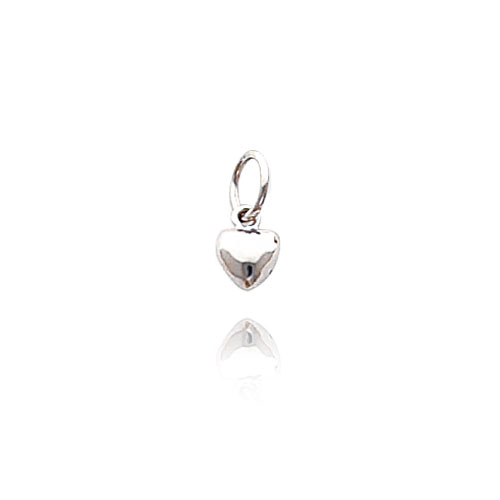 Showcase your sensitive side with this dainty heart pendant. Polished White Gold is used to craft this tiny puffed heart charm. Heart hangs from a polished gold bail.