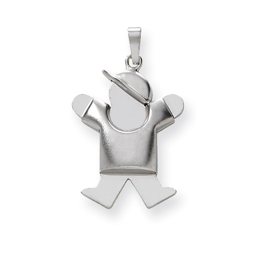 14k White Gold Puffed Boy with Hat on Right Engraveable Charm