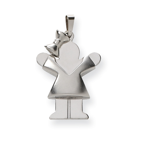 14k White Gold Puffed Girl with Bow on Left Engraveable Charm