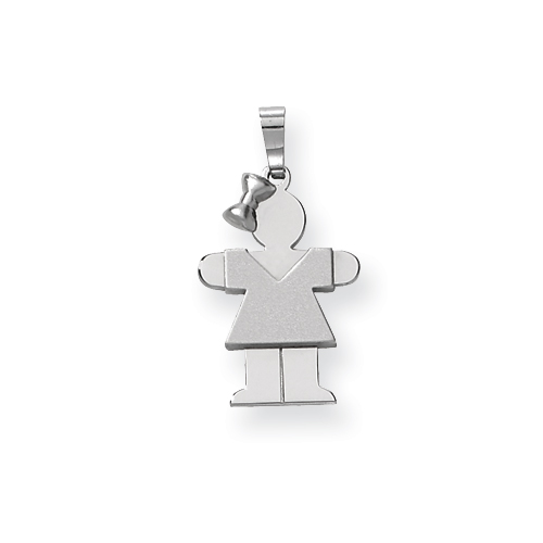 14k White Gold Small Girl with Bow on Left Engraveable Charm