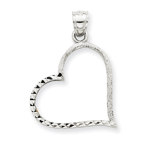 14K White Gold Solid Satin Diamond-Cut Small Reversible Heart Pendant
