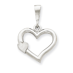 14K White Gold Solid Satin Polished Fancy Heart Pendant