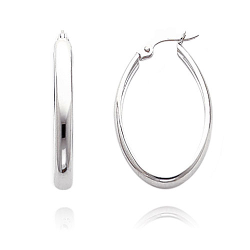Picture of 14K White Gold 3.50mm Oval Classic Hoops