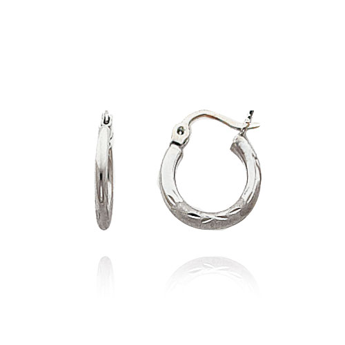 Picture of 14K White Gold 3x10mm Satin & Diamond Cut Hoops