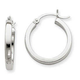 14K White Gold 3x20mm Rectangle Tube Hoop