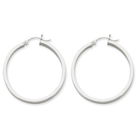 14K White Gold 3x50mm Round Hoop Earrings