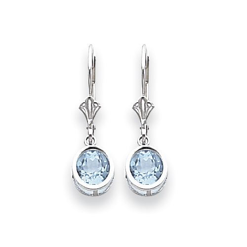 14k White Gold 6mm Blue Topaz leverback earring