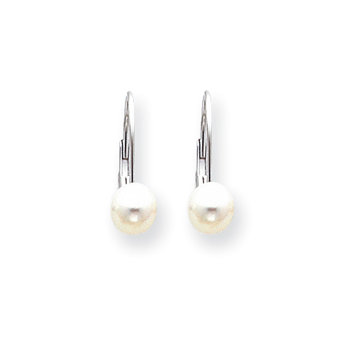 14k White Gold 6mm Pearl Leverback Earrings