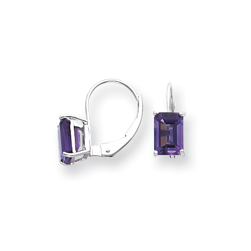 14k White Gold 7x5mm Emerald Cut Amethyst earring