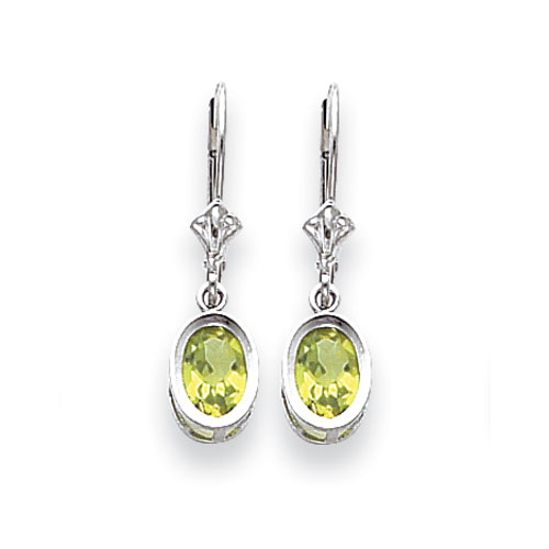 14k White Gold 7x5mm Oval Peridot leverback earring
