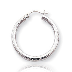14K White Gold Diamond-Cut 3x30mm Round Hoop Earrings