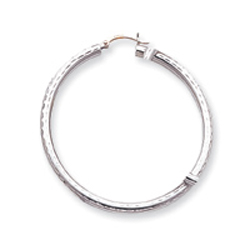 14K White Gold Diamond-Cut 3x50mm Round Hoop Earrings