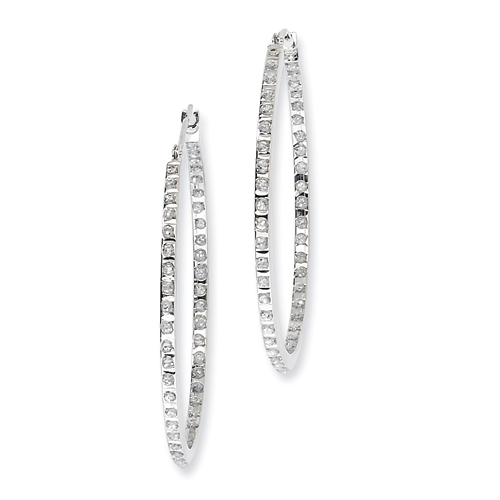 14k White Gold Diamond Fascination Round Hinged Hoop Earrings