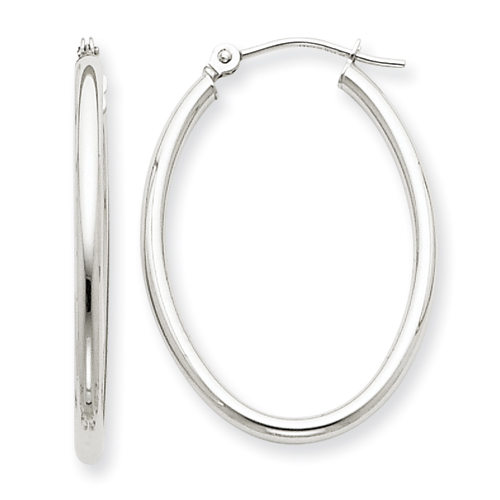 14k White Gold Polished 2mm Oval Tube Hoop Earrings