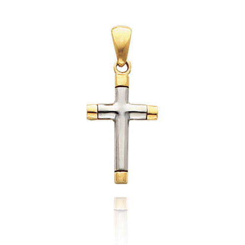 14K Two-Tone Tubular Cross Pendant