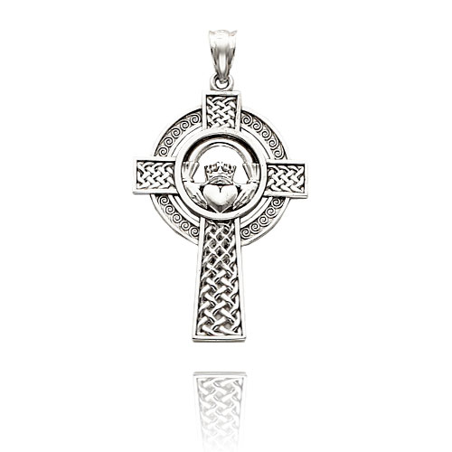 Picture of 14K White Gold Detailed Celtic Claddagh Cross Pendant