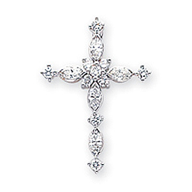 14K White Gold Diamond Cross Pendant