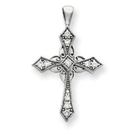 14K  White Gold Diamond Cross Pendant