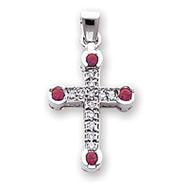 14K White Gold Diamond & Ruby Cross Pendant