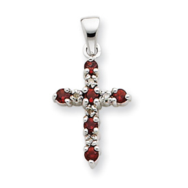 Picture of 14K White Gold Garnet & Diamond Cross Pendant